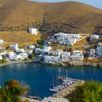 Livadi, the island’s most famous beach, is located a 20-minute walk or five minutes by bus from Chora. It has numerous cafes, restaurants, and hotels. If you prefer a quieter place, you can head southwest and swim in three small bays – Tzanaki, Agios Konstandinos and Chilos.
