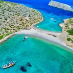 Viewed from above, Astypalaia resembles a butterfly. One wing is covered with forest, the other is treeless and deserted. There are no snakes here, a rare occurrence in the Aegean islands. The island’s vegetation consists primarily of shrubs, junipers, and grasses, where flocks of sheep and goats graze. Citrus fruits are abundant in the valleys.