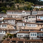 The Old Town is Berat’s main attraction. It is a labyrinth of cobbled streets with beautiful medieval architecture and Ottoman houses. In the historic center, Berat is divided into two halves by the Osumi River: the Muslim Mangalem and the Christian Gorica.