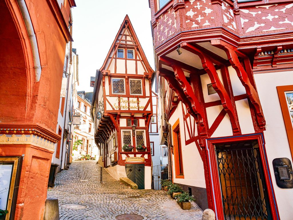 Of these houses, the oldest, the Heinzhaus, stands out with its original design, built in 1588, and the small, pointed, slightly tilted Spitzhäuschen, built in 1416. The Spitzhäuschen is an example of an old Mosel winemaker’s house with a wine cellar.