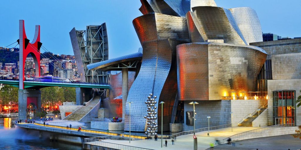 The Guggenheim Museum is Bilbao’s most famous museum. The museum building is considered a pioneering example of 20th-century architecture. Designed by architect Frank Gehry and completed in 1997, it features 24,000 square meters of exhibition space, displaying contemporary art collections from world-renowned artists.