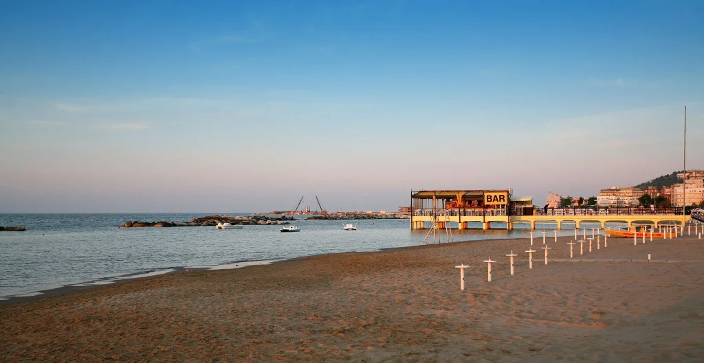 The crescent-shaped sandy beach of Cattolica, stretching for two kilometers, has been awarded the Blue Flag for the cleanliness of its waters. Sun loungers and umbrellas are available for a fee, and can be rented for a day or for a longer period—a week, a month, or the entire season. The coastline is well-equipped: each beach has its own room and offers a variety of services, from small pools and jacuzzis to outdoor gyms, billiards, table tennis, pedalo and boat rentals, and children’s clubs. Numerous restaurants and bars along the beach are open from early morning until evening.