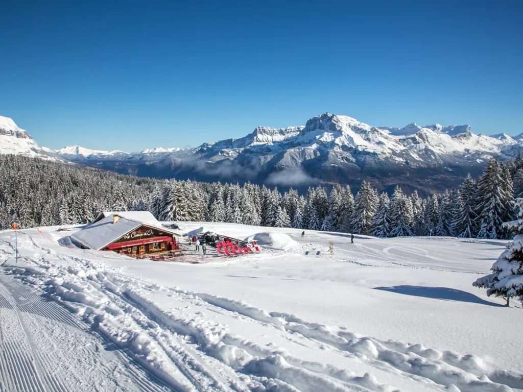 Evasion-Mont-Blanc is one of the largest ski areas, encompassing regions such as Megève, Saint-Gervais, Combloux, Les Contamines, Bellevue, and Les Houches. It is an ideal destination for skiers of all levels, from beginners to experts. The region is renowned for its excellent practice and sport slopes, many of which wind through picturesque forests with stunning views of Mont Blanc.