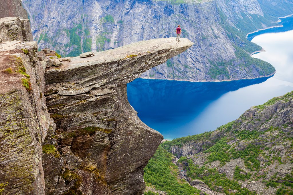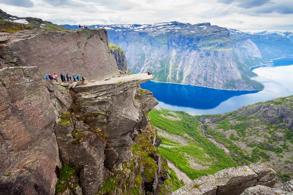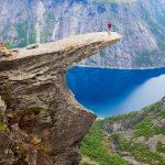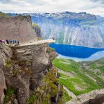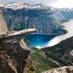 One of Norway’s most famous waterfalls, located in Hordaland county. The waterfall rises 182 meters, and its turbulent waters flow into the Bjøreya River, which flows through mountain forests. Near the waterfall is a viewing platform where tourists gather to see the frequent rainbows, making Vøringsfossen a “rainbow waterfall.” Be careful not to fall off the rocky ledge.