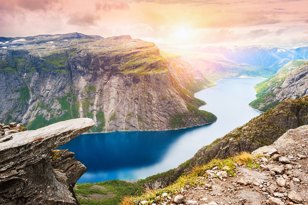 This is home to the largest reindeer population in Northern Europe. Renowned polar explorers Roald Amundsen and Fridtjof Nansen used the plateau to prepare for their expeditions. There are numerous cycling and skiing routes here. Fishermen try their luck on the mountain lakes and narrow arms of the Sørfjord. In the northwest of the plateau is one of Norway’s largest glaciers, Hardangerjøkulen, and the 1,700-metre-high Mount Horteigen is visible from anywhere on the plateau.