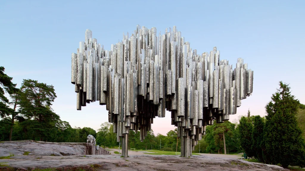 The Töölö district is a quiet corner beloved by the creative intelligentsia. Among its main attractions are three outstanding landmarks. The Sibelius Monument is striking in its unusual form: enormous organ pipes rise on supports, symbolizing music. The monument weighs 24 tons.