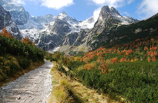 In addition to Slovakia’s highest peak, Gerlachovský štít (2,655 m), the High Tatras boast numerous waterfalls, the most famous of which are Studéné potok (Studený potok) waterfalls; glacial lakes, the deepest of which is Velké Hincovo pleso (53 m); and a rich flora and fauna.