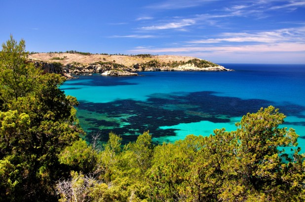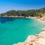 In the east of the island, Platja es Canar beach is popular with families. There’s a hippie market nearby. Cala Llonga is also suitable for couples. The bay is nestled between high mountains, which prevent waves from forming. The town of Aigues Blanques is the island’s official nudist beach.