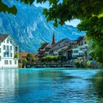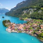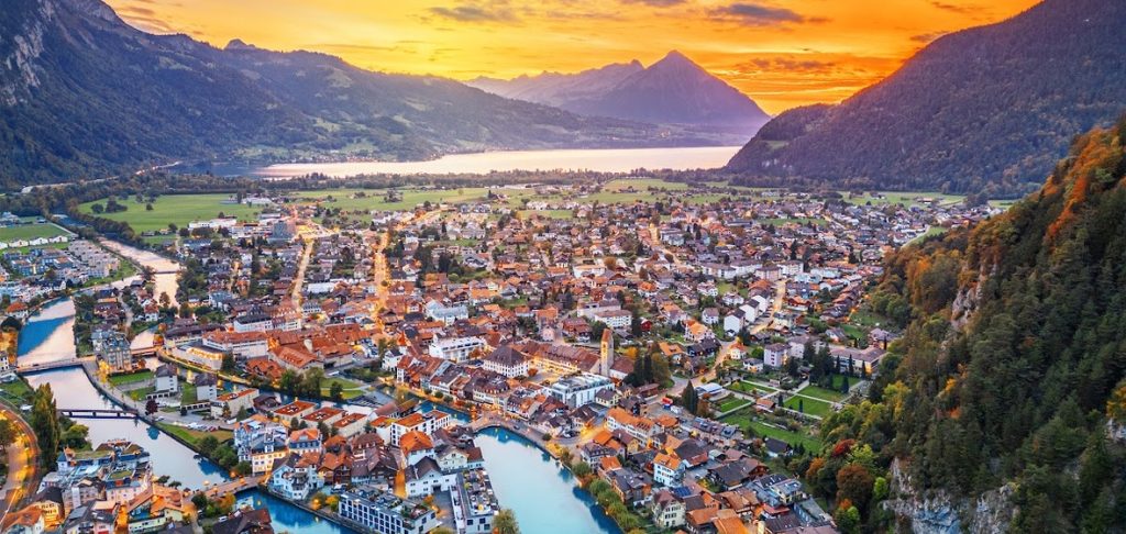 Interlaken is a small resort town in the Swiss Alps that has been a popular tourist destination for over 300 years. The local scenery is truly beautiful: the town is nestled between lakes, surrounded by mountains and pine forests, so the air here is simply magical.