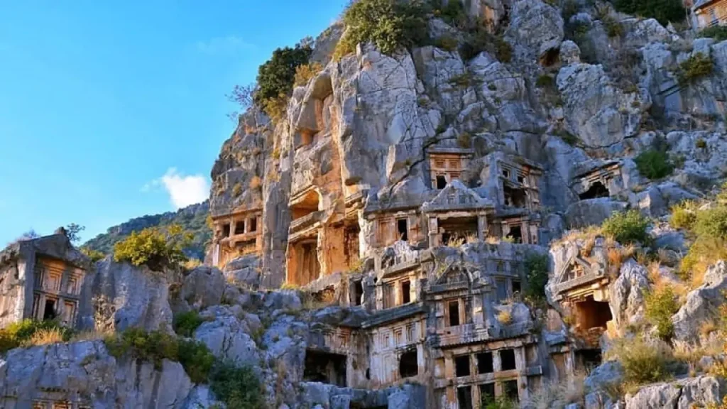 Uçağiz, also known as Teimussa, is a small village built on the ruins of an ancient city. Sarcophagi from the Lycian period are remarkably well preserved to this day.