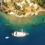 Aperlai is a Lycian city, now in ruins, built west of Uçağiz near the port of Sıcak. There you can see the ancient ruins of what was once the mighty Aperlai fortress—remnants of city walls, ancient sarcophagi, forts, and columns. Three square watchtowers rise above the city walls. Inside the fortress are the ruins of a Byzantine chapel.
