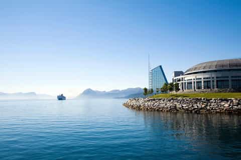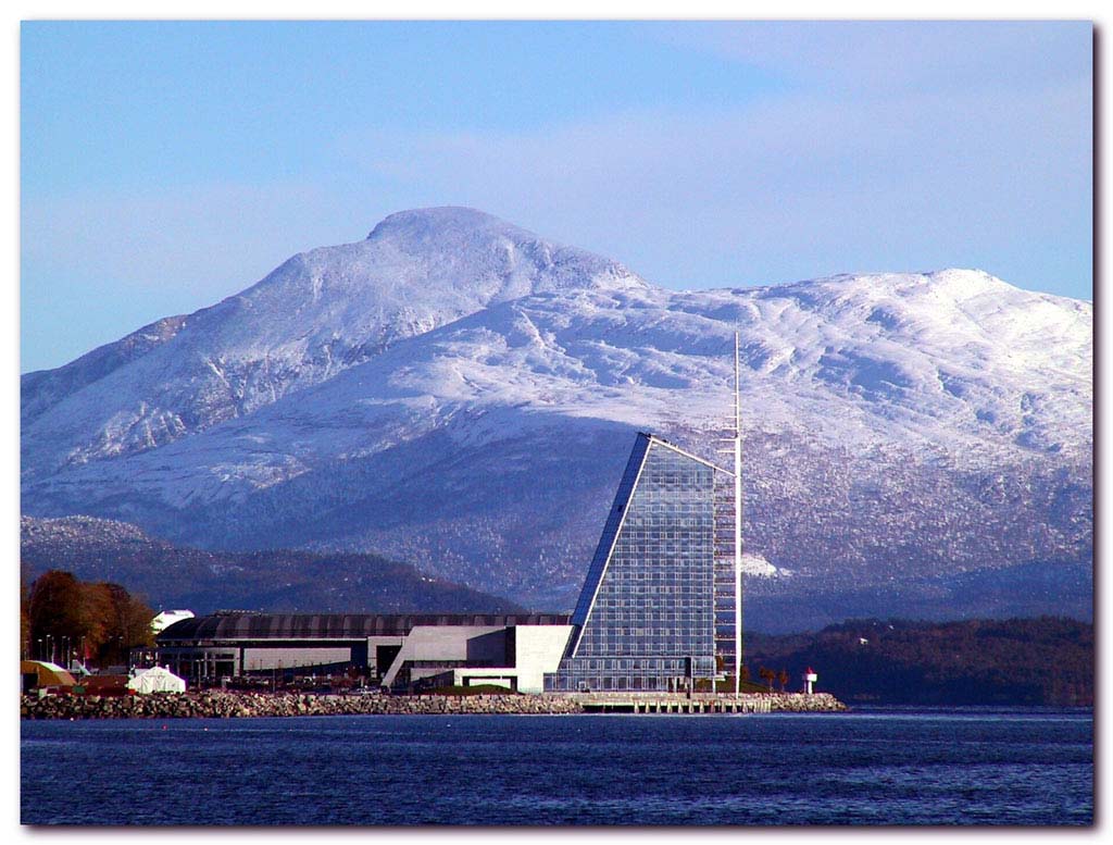 Molde Cathedral, built in 1957 in the Gothic style, boasts a 50-meter bell tower, considered one of the city’s symbols. The cathedral stands on the site of two former churches destroyed by fire.