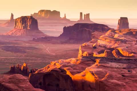 This is the American West at its most dramatic — endless desert roads, towering rock formations, and unforgettable sunsets.