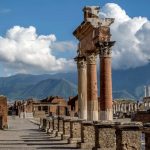 The Forum of Pompeii was the heart of the city’s public life and occupied a vast area, sufficient to accommodate the entire population of Pompeii. The Temple of Apollo is believed to be the oldest temple in Pompeii, built around 575-550 BC. It was surrounded by 28 Corinthian columns, two of which remain today. Pompeii’s residential buildings, such as the House of the Tragic Poet, the House of the Faun, the House of the Vettii, and the House of the Surgeon, are characterized by unique interior details, such as mosaic floors and frescoes depicting Greek mythology. Various thermal baths, as well as bakeries, wool workshops, and other artisan workshops, have also been discovered within the complex.