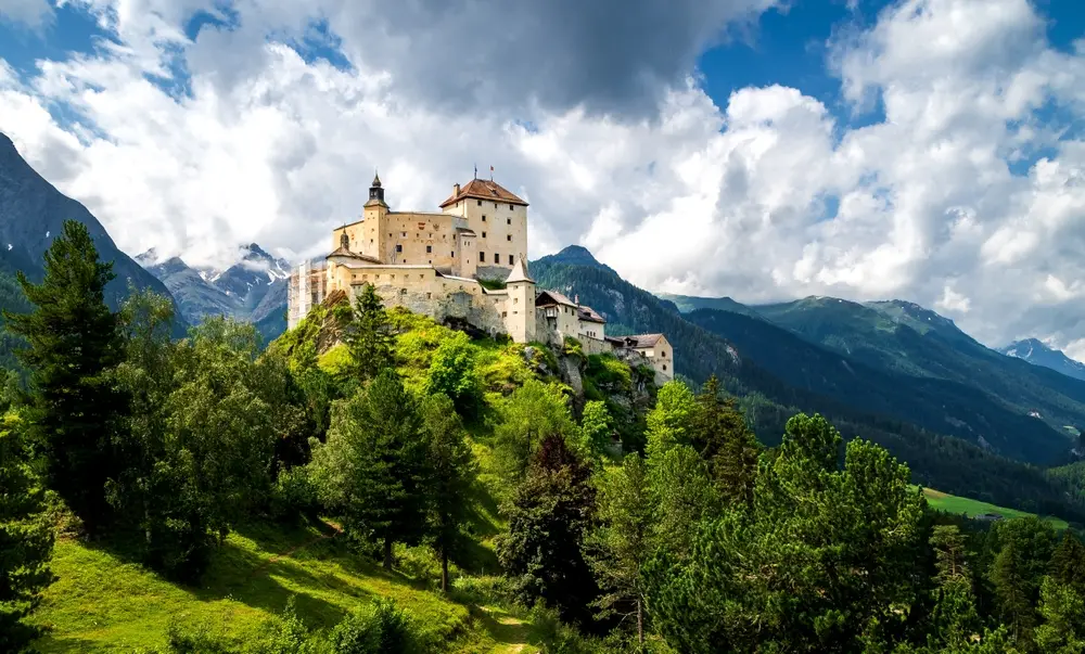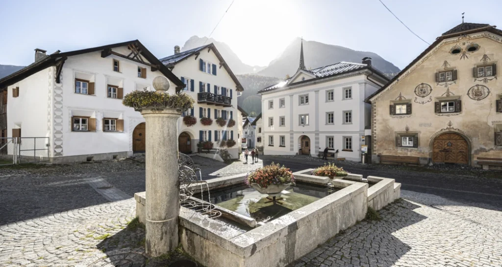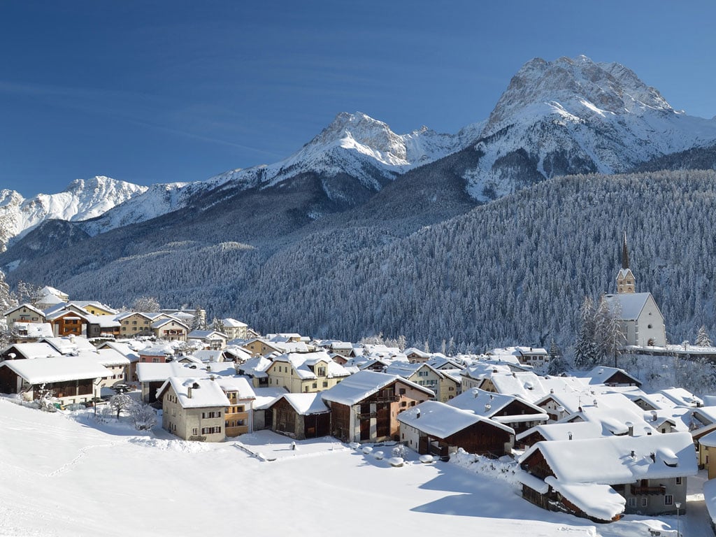 Scuol is located 60 km from St. Moritz at an altitude of 1,250 meters above sea level. The local population still speaks the ancient Rhaeto-Romanic language, the fourth official language of Switzerland. The resort is famous for being a popular holiday destination for the Swiss. It is also home to unique springs rich in Glauber’s salts.