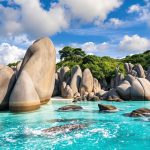 The most picturesque beach on Mahé is Anse Intendance in the southwest, surrounded by coconut palms. Praslin’s main beach area is Anse Lazio: it’s quiet on weekdays, but on weekends, the shores fill with locals.