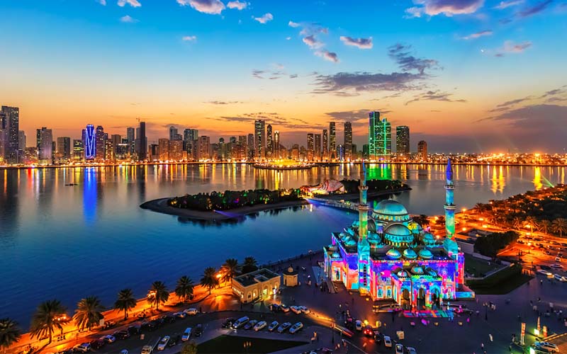 A major landmark of Sharjah is the King Faisal Mosque, which was donated to the emirate by the Saudi monarch, who announced a competition for the best building design. A Turkish architect won the competition for a traditional mosque with two minarets, reminiscent of the side of an airliner. Nearby is another religious landmark—a 7-meter-tall monument to the Quran. Sharjah has earned this respect thanks to its strict laws.