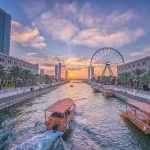 The Al Qasba pedestrian area is a favorite spot for evening strolls for both couples and families with children. Sharjah’s main landmarks are located around the canal, and the best view of them can be enjoyed from atop the Eye of the Emirates Ferris wheel, 60 meters above sea level. From above, you can admire the 100-meter dancing fountain in the neighboring Al Majas Park, which puts on shows from 7:30 PM until midnight.