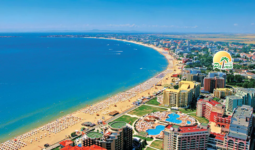 The Sunny Beach tourist complex stretches along a 7-kilometer strip along the Bulgarian coast. Situated away from railways, highways, and major cities, it is annually awarded the Blue Flag.