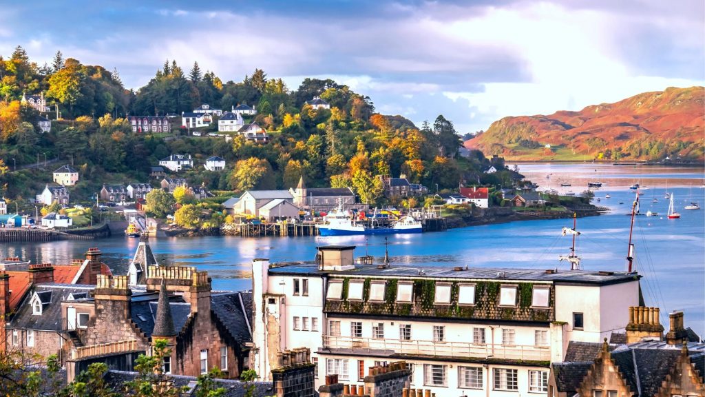 Oban is a resort town located on the Bay of Lorne. The local bay is horseshoe-shaped, protected from wind and waves by the islands of Kerrera and Mull. Thanks to the warm waters of the Gulf Stream, temperatures here rarely drop below freezing even in winter.