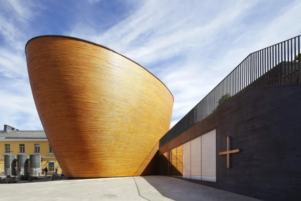 The Kamppi Chapel of Silence was opened relatively recently – in 2012. The chapel is an unusual wooden bowl-shaped structure. The exterior, made of spruce planks, appears completely smooth. The interior is paneled with alder.