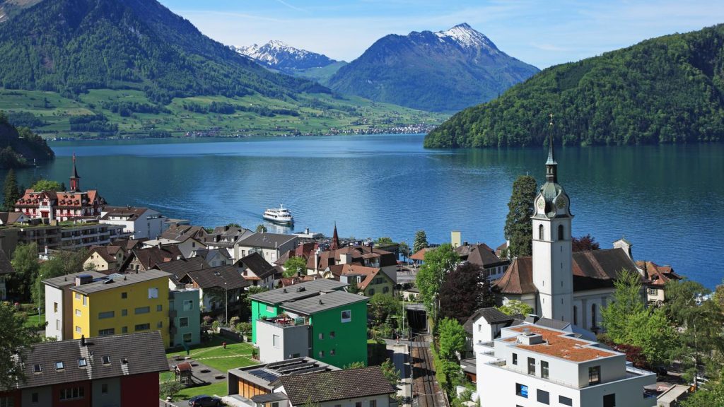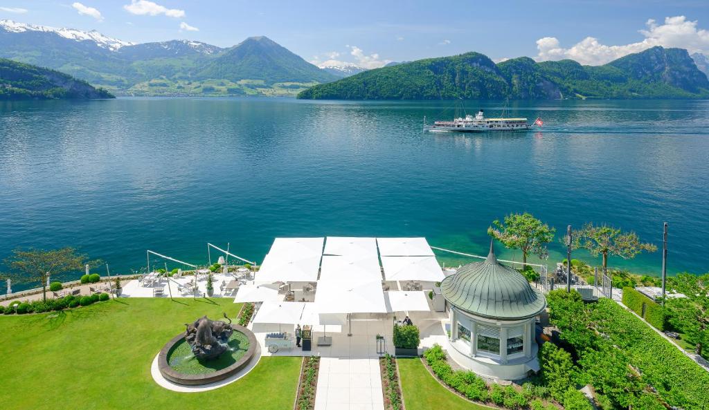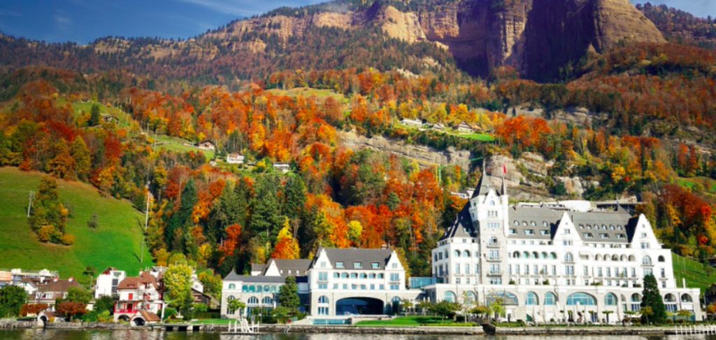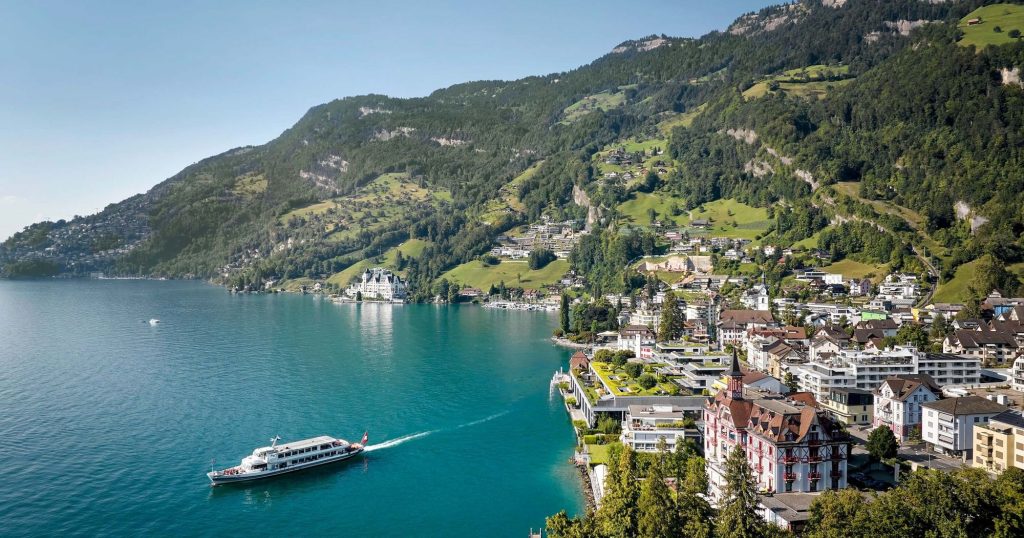 The first mentions of Vitznau date back to 998, but it wasn’t until the late 19th century that it became a popular vacation spot for celebrities and politicians. Here you’ll find everything: a high level of comfort, mountain air, a mild climate where figs, persimmons, chestnuts, and palm trees grow.