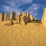 One of Western Australia’s greatest natural wonders is Nambung National Park, located 200 km north of Perth. The park’s vast expanse is striking in its diversity: endless sand dunes, eucalyptus thickets, and vibrant flower fields await.