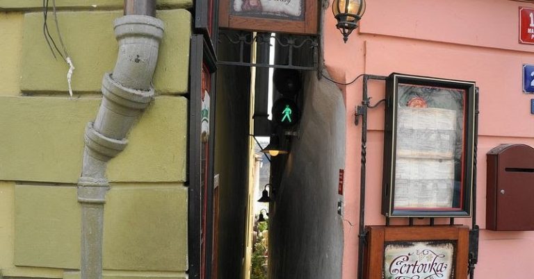 If you watch any tourist program about Prague, you will be told about this landmark of the Czech capital. It really exists, and only one person will go there: the traffic is regulated by a traffic light. This street leads to a restaurant.