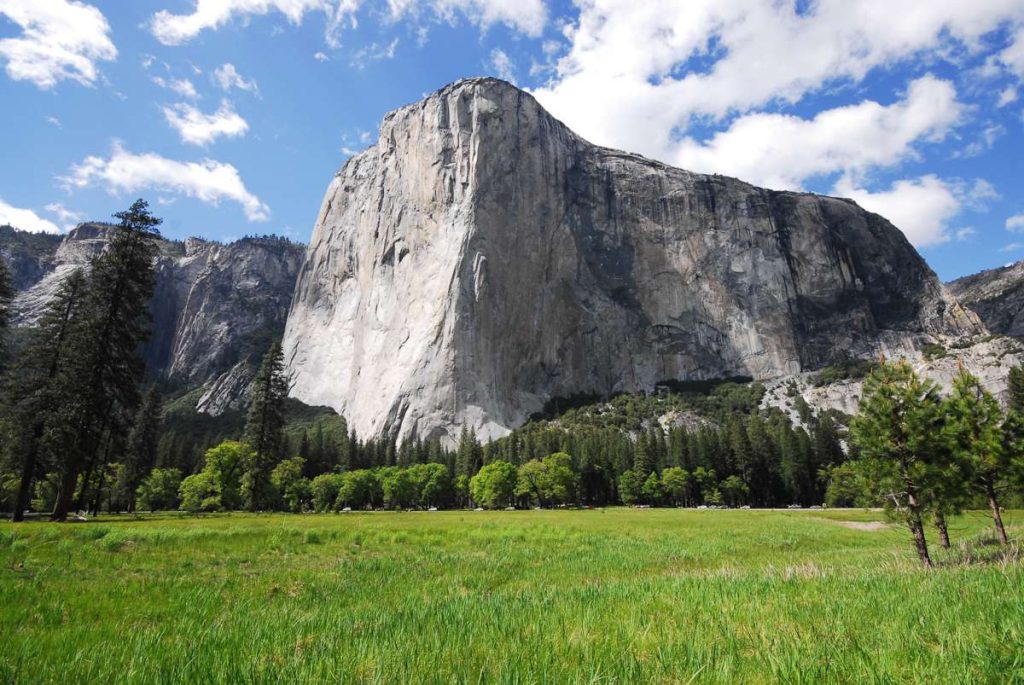 Yosemite Valley accounts for only 1% of the park’s total area, but it is where most tourists head. The most popular site in the park is the 2,307-meter-high granite cliff of El Capitan, clearly visible from anywhere in the valley.
