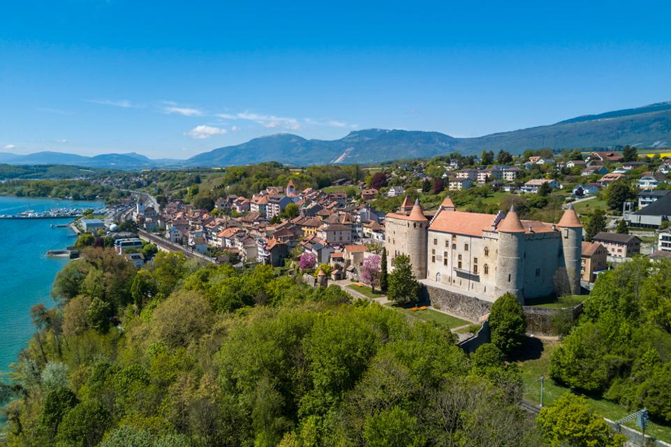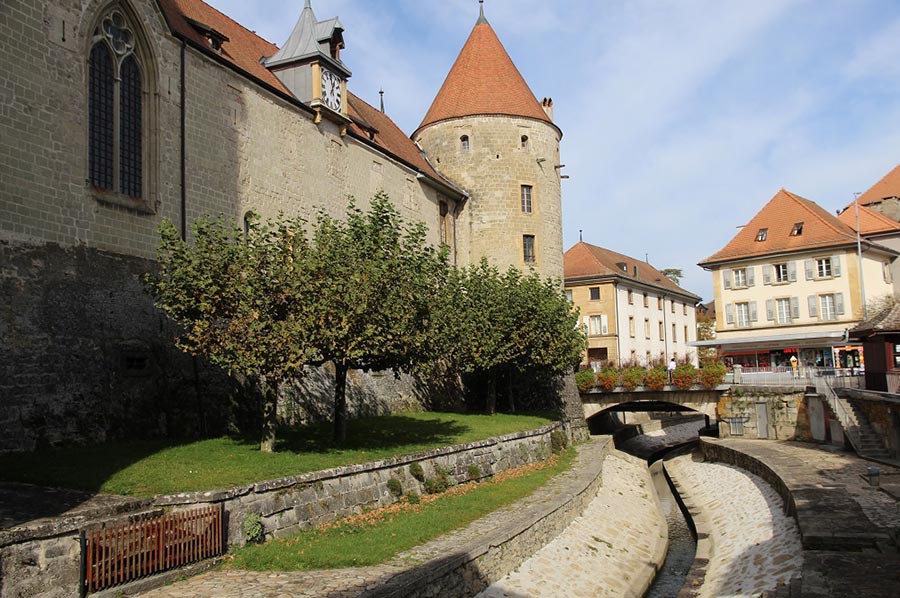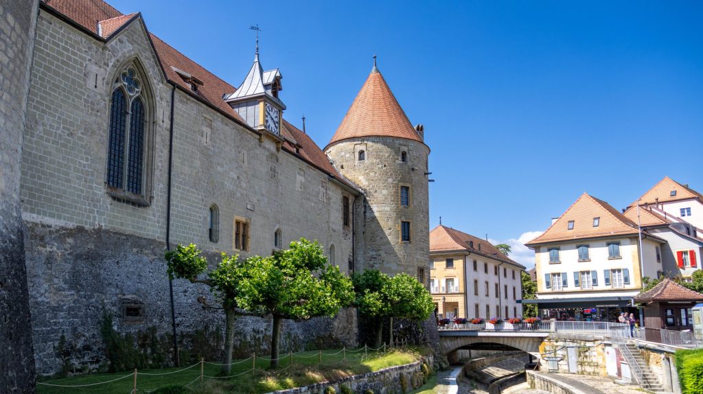 Yverdon-les-Bains is the only thermal and lake resort in Switzerland, located near Lake Geneva. The town boasts an impressive medieval castle and a beautiful cathedral on the central square.